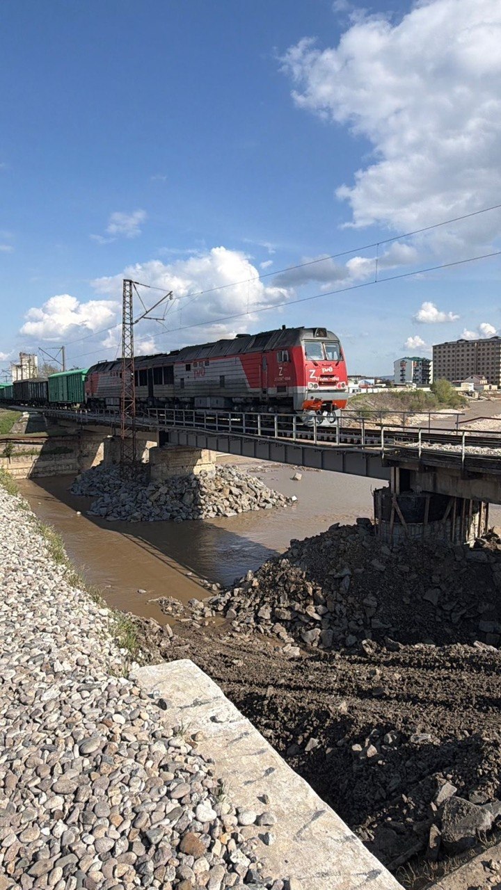 В Дагестане возобновлено движение поездов по восстановленному мосту на перегоне Хасавюрт-Кадиюрт. Объект был повреждён в результате обрушения из-за обильных осадков в марте 2026 года.