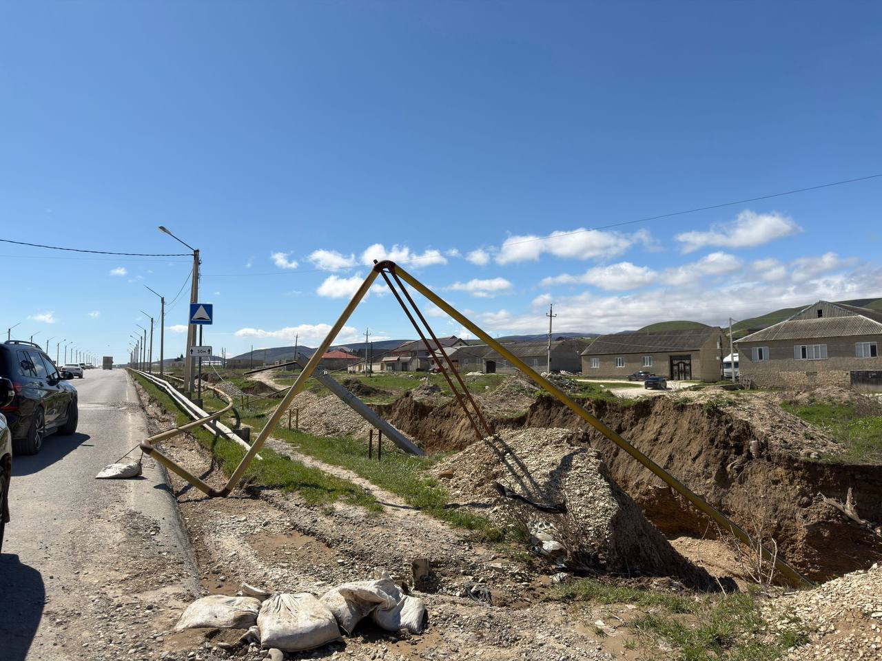 В селе Мамедкала газ подан в большую часть населённого пункта. На одном из участков специалисты продолжают расчищать подъездные пути и реконструировать сети — работы здесь ещё не завершены.